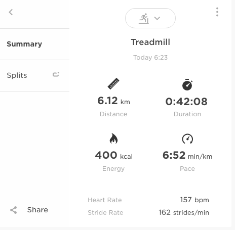 I don’t have the guts to brave the dark and the frost on my own so while the Old Goat is languishing in bed resting his pins for his 87km Fun Run I hit the old treadmill.